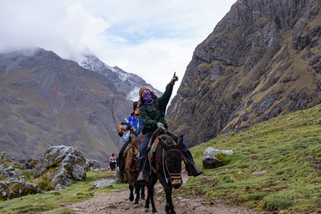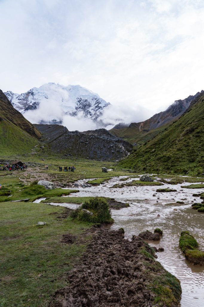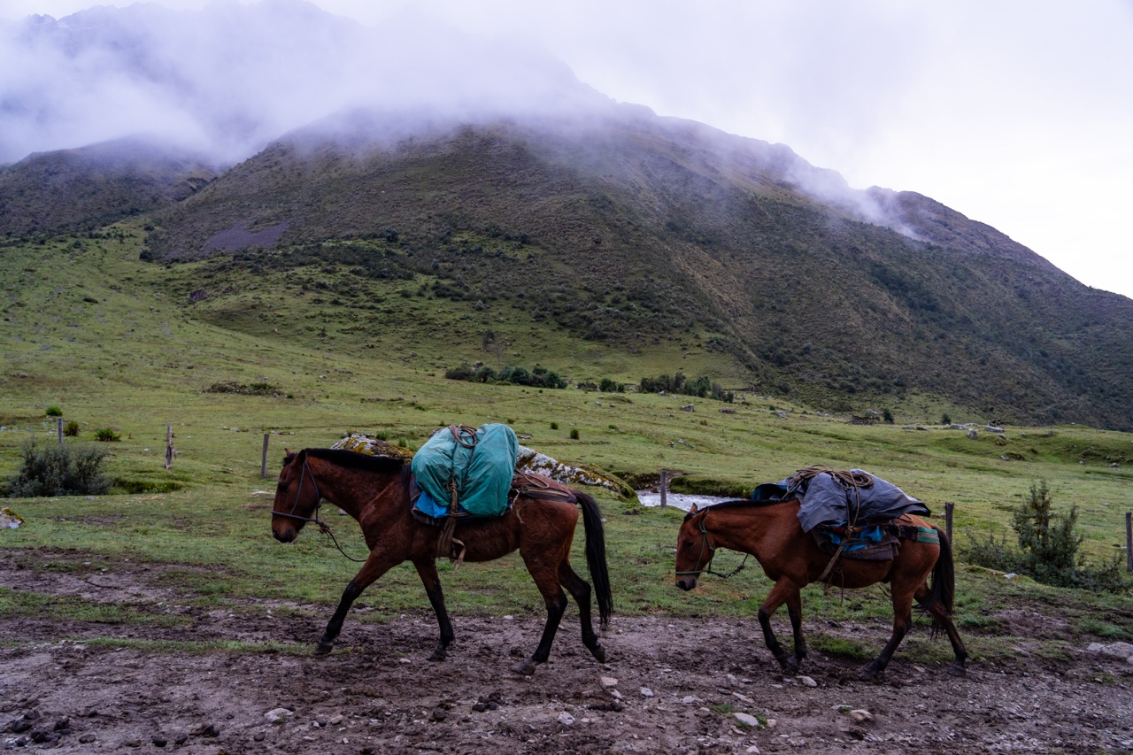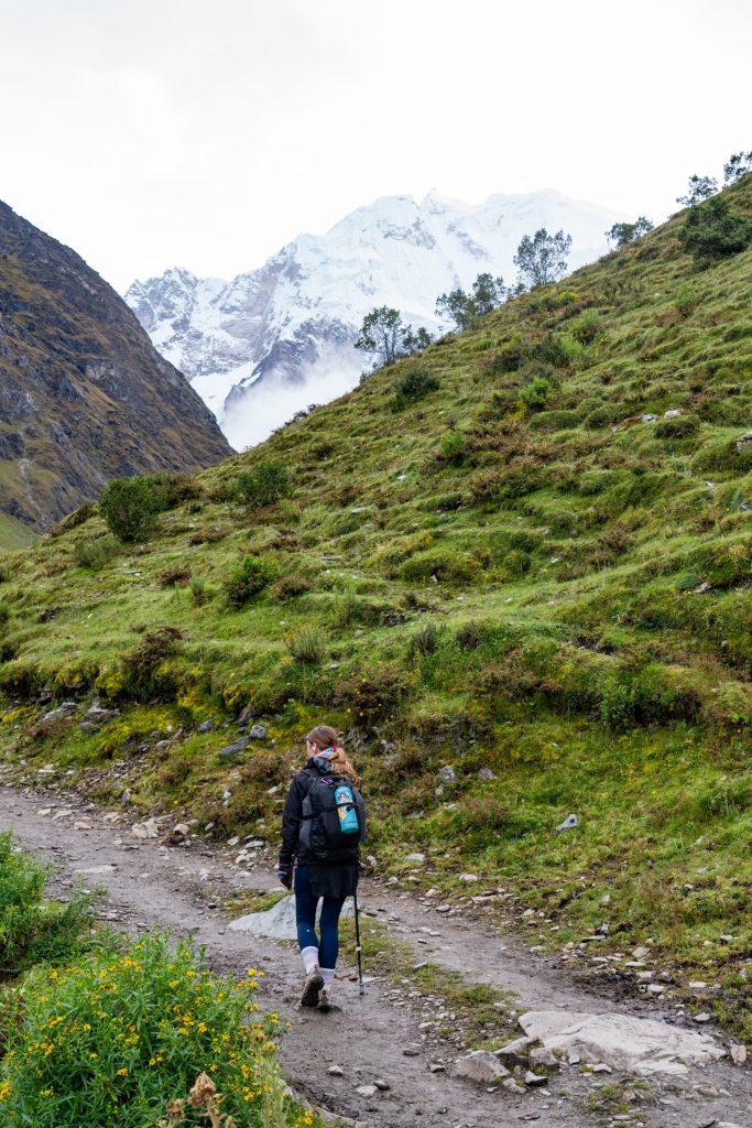 After breakfast, it was another hour or so drive to the trailhead. The sun had finally come out, so it was much warmer and nicer when we arrived. We were in the foothills of these absolutely stunning, snow capped mountains. It was one of the most beautiful place I had ever seen. We were given a few minutes to use the bathroom and get our bags sorted. The Salkantay Trek package we had gone with included a horse porter that would take our sleeping bags and clothings ahead to camp every night, so we only had to trek with our day packs. We were given a strict 5kg limit including the sleeping bag (which we did not realize was almost 2 kg), and Vidal came over and told us our bags were too heavy (oops!). In our defense, we had packed a lot of snacks so the load would lighten as the days continued…