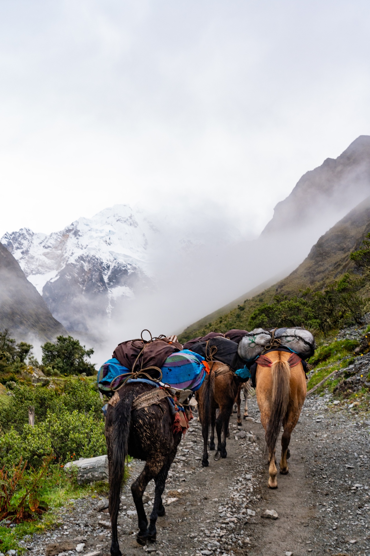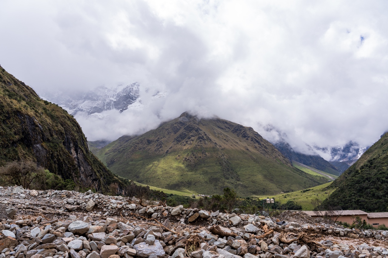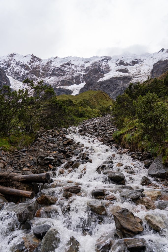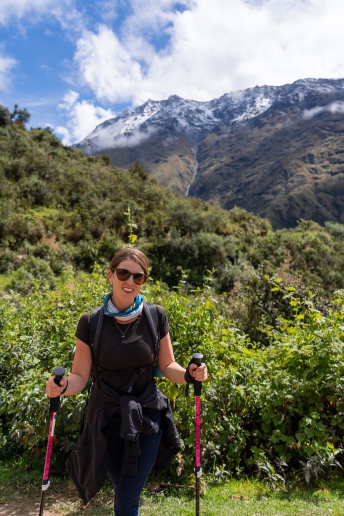 After breakfast, it was another hour or so drive to the trailhead. The sun had finally come out, so it was much warmer and nicer when we arrived. We were in the foothills of these absolutely stunning, snow capped mountains. It was one of the most beautiful place I had ever seen. We were given a few minutes to use the bathroom and get our bags sorted. The Salkantay Trek package we had gone with included a horse porter that would take our sleeping bags and clothings ahead to camp every night, so we only had to trek with our day packs. We were given a strict 5kg limit including the sleeping bag (which we did not realize was almost 2 kg), and Vidal came over and told us our bags were too heavy (oops!). In our defense, we had packed a lot of snacks so the load would lighten as the days continued…