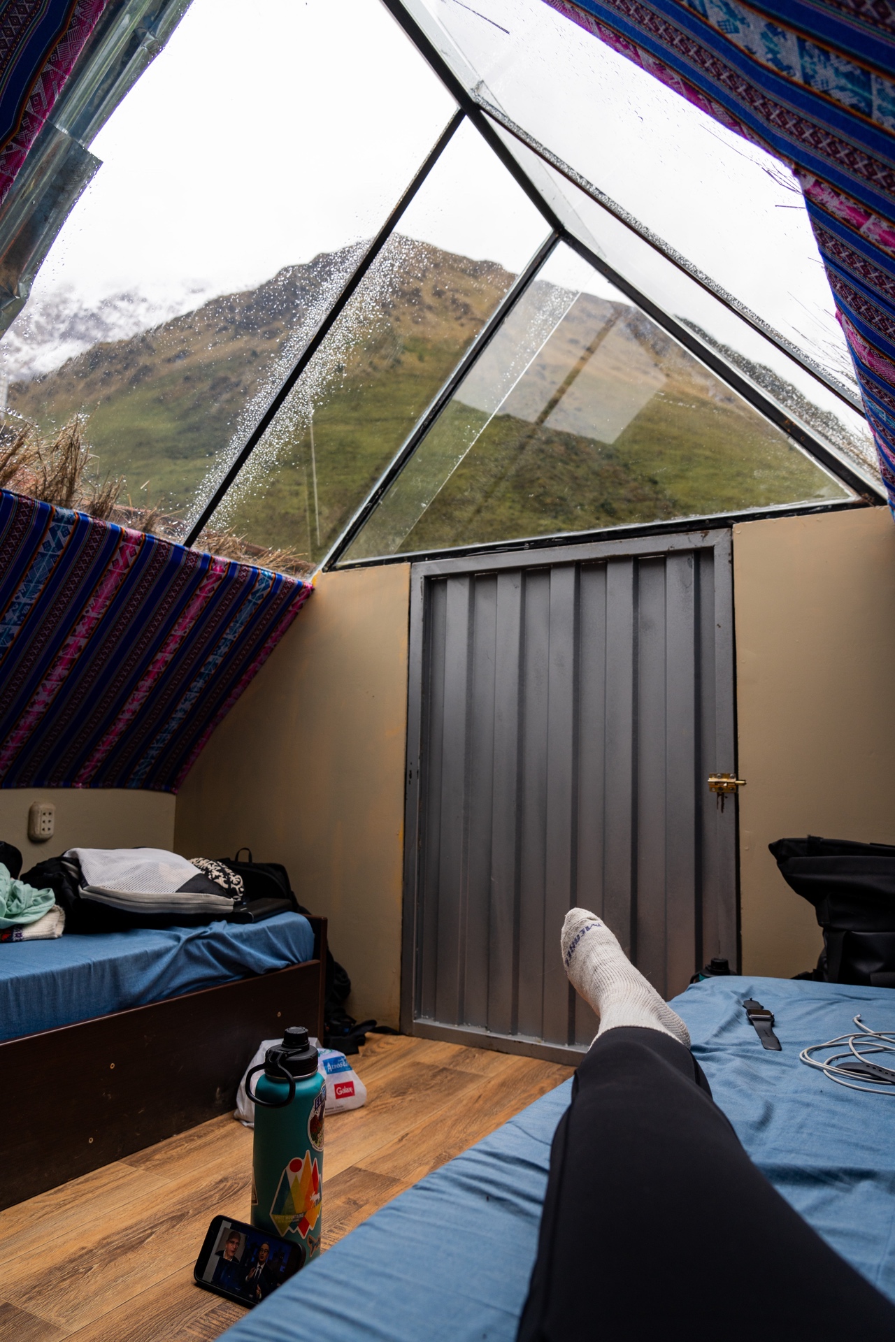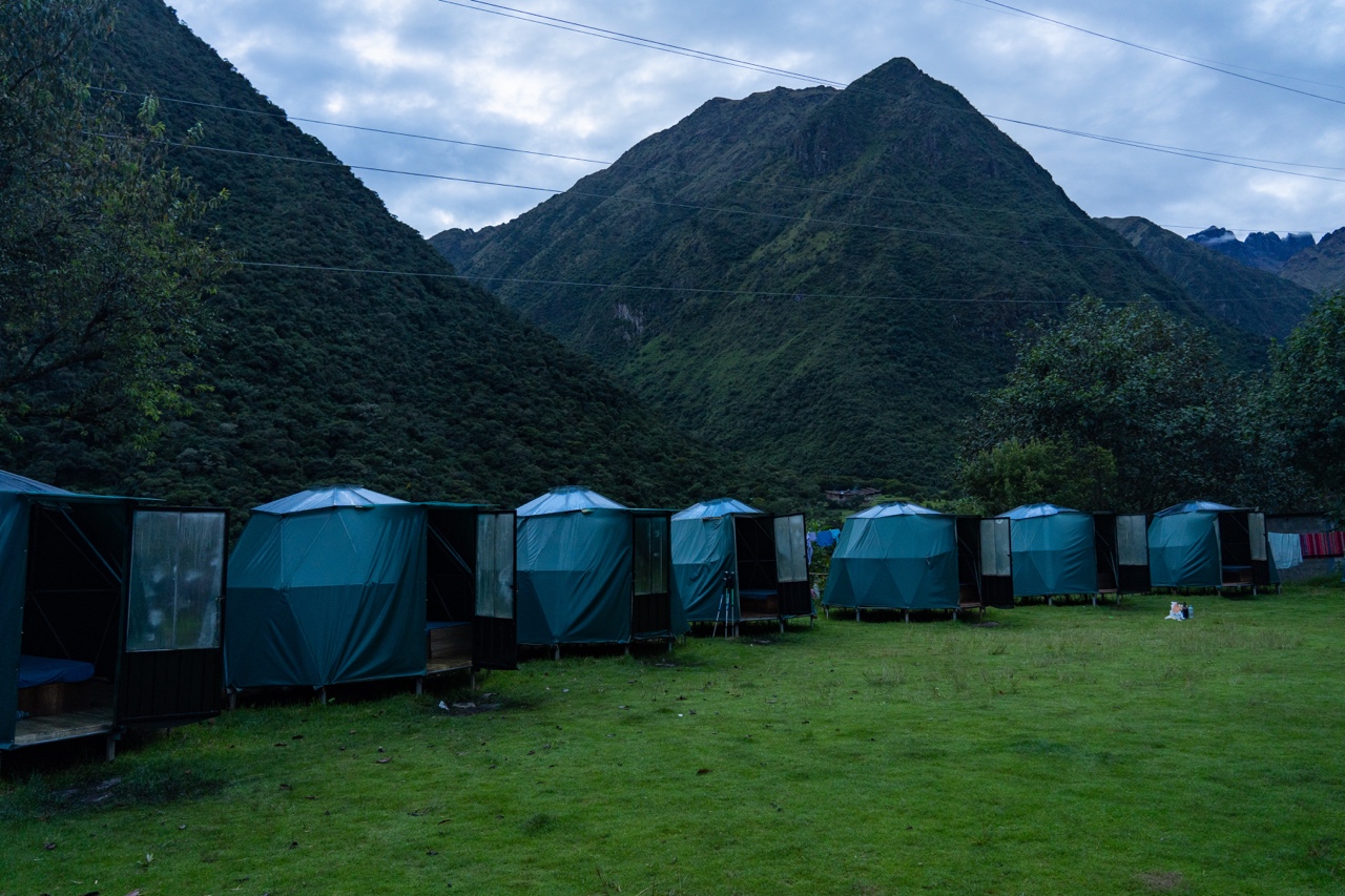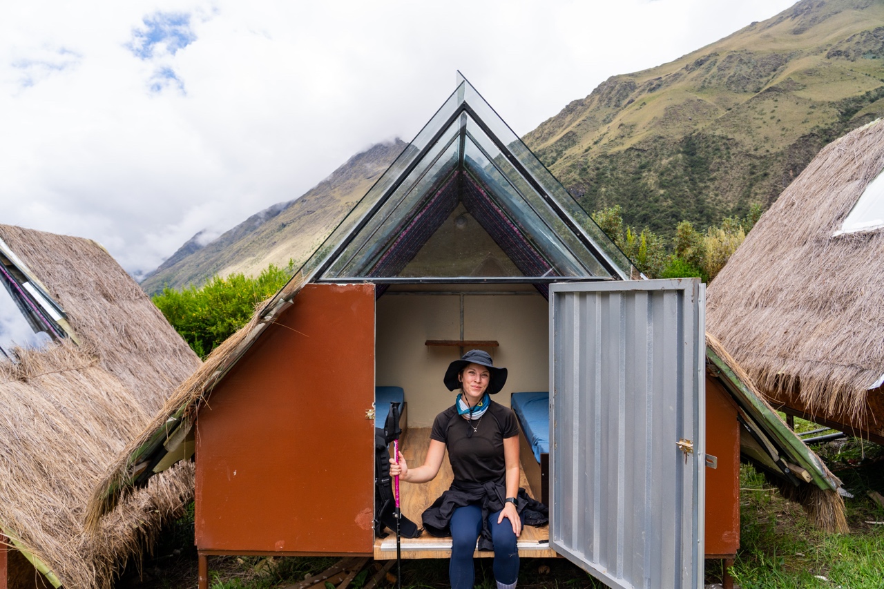 After that steep section of switchbacks, the rest of the trek to basecamp was fairly flat and easy. It took about 2 hours to arrive to our first basecamp. It was so cute! We got our own cabin with 2 little beds and a glass roof. It was very basic but cozy and we rested our sore legs as we waited for lunch. They served a delicious lunch of fish, quinoa, salad, and rice around 1:30 pm. We hadn’t eaten since 6:30 am, so we absolutely demolished our food.