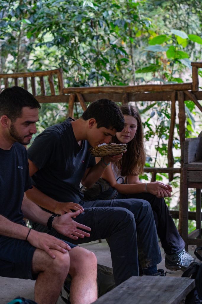 The hike was warm and pretty and most importantly, easy. Vidal explained that the entire valley was very fertile for coffee production, so we would be getting a tour of a local plantation before we headed to the campsite! They showed us how they grew, roasted, and grinned the beans in a traditional grinder. They made us a super strong espresso and gave us a cup to try. It was VERY strong.