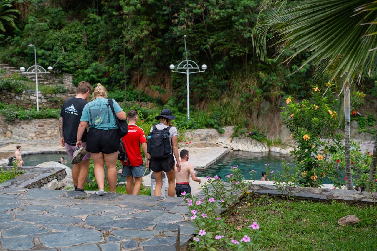 We said our goodbyes to the 4day trekkers who were leaving for Aguas Caliente, and got ready for our afternoon activity – visiting the local hot springs! The hot springs were beautiful and much needed on our sore bodies. We spent the whole afternoon relaxing in the beautiful hot springs, enjoying chatting with different hikers, having a few drinks, and taking in the gorgeous sunset.
