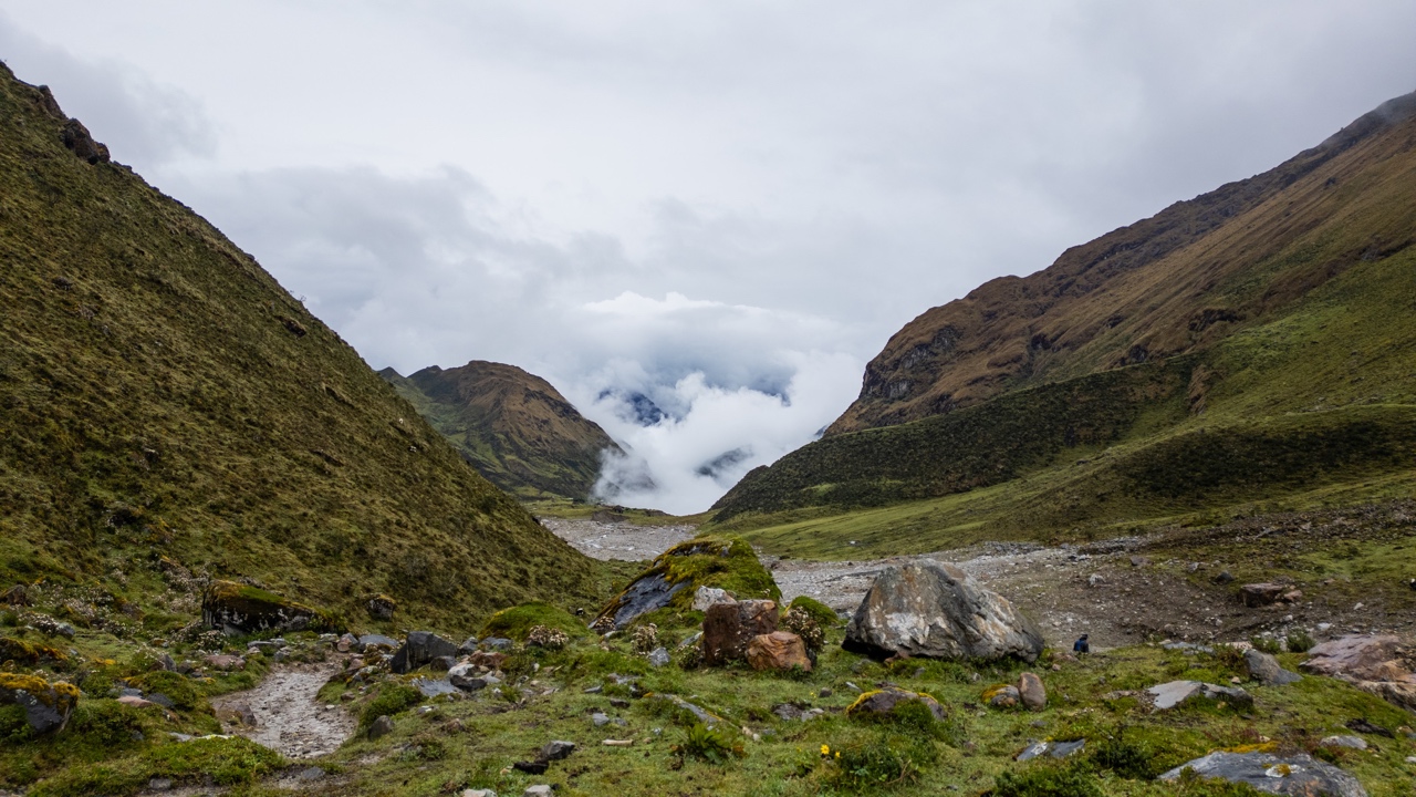 Vidal had not sugarcoated our situation – we were still a solid 4 hours of hiking away from our camp, and we had no options other than to put one foot ahead of the other and trudge along. We didn’t take too many breaks, only quick stops for water and snacks every now and then. Morale was pretty low at this point, but it had at least warmed up quite a bit the lower down into the valley we got.