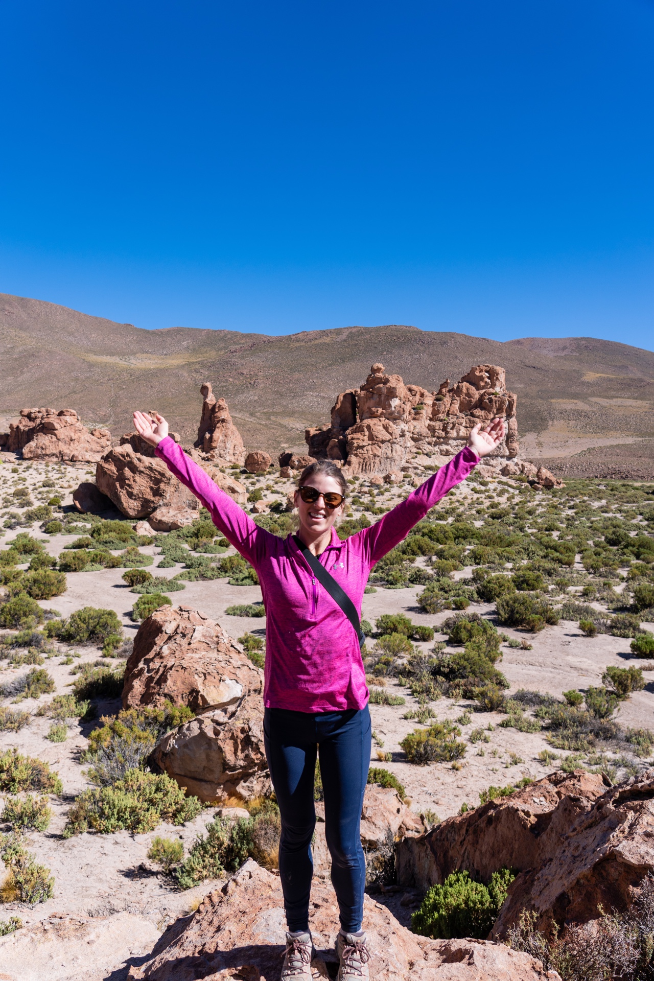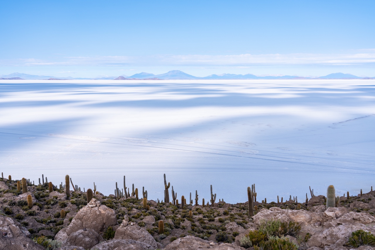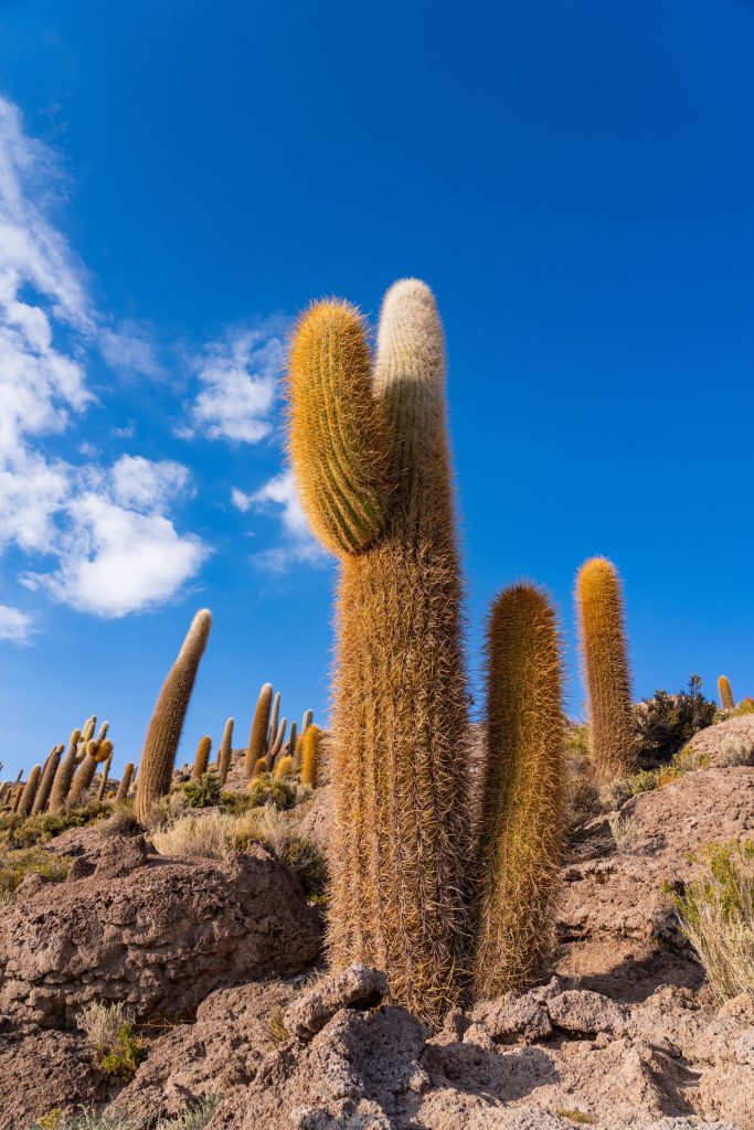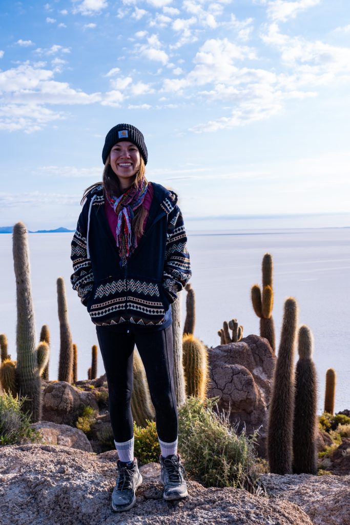 After watching the gorgeous sunrise at the salt flats, we started driving towards a spot in the flats called Isla Incahuasi, a cactus-covered “island” in the middle of the salt flat. Despite being surrounded by this insanely vast expanse of salt, the island is covered with giant, ancient cacti, some of which are over 1,000 years old. We were able to climb up the hill and look at all the huge cactuses, and take in the views from up above.