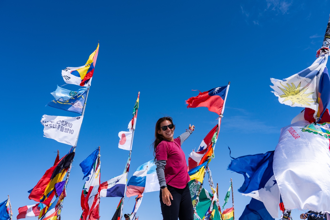 On our way into the town of Uyuni, we visited the Museo de Sal, where there was a square of flags, including one from Taiwan and Canada (but no U.S. flag!) And a large salt tower called Montones de Sal.