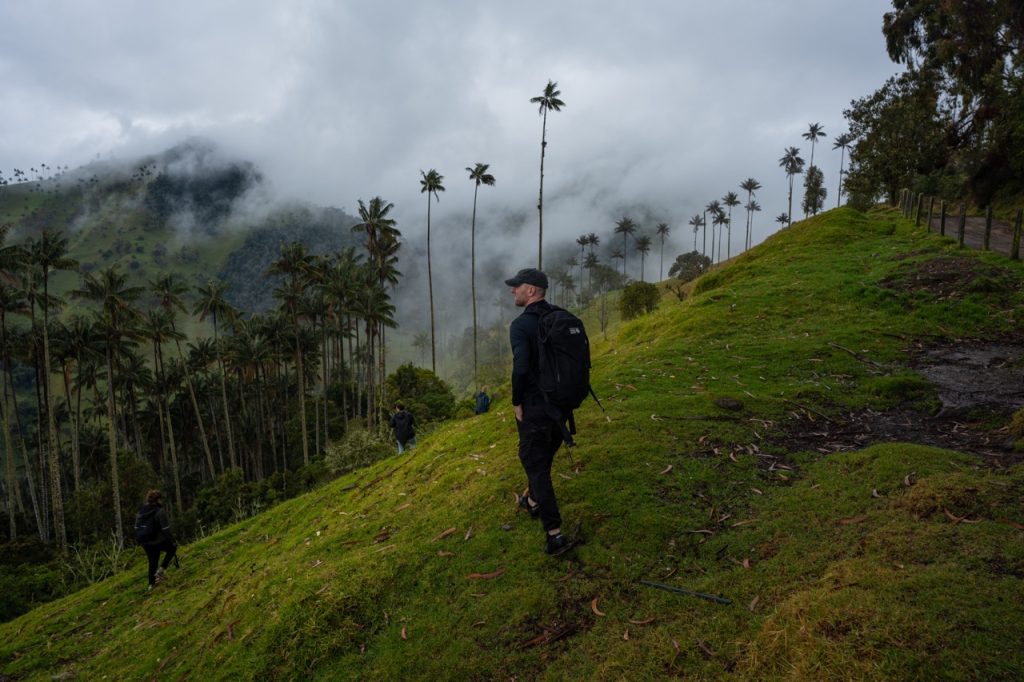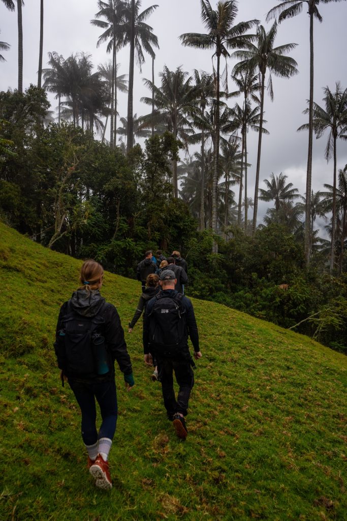 Adam and another Dutch guy were experienced mountain bikers so they full sent it down the mountain, while Saz and I chose to take it slow and steady. It was rainy, misty, and cold, but we just focused on keeping our balance. The further down the mountain we rode, the warmer it got. The first stretch of our ride was about 13 km, where we pulled off for a break at the Wax Palm Forest called La Carbonera. Wet and completely covered in mud, we took off all our protective equipment for it to dry out while we did a little hike through La Carbonera.