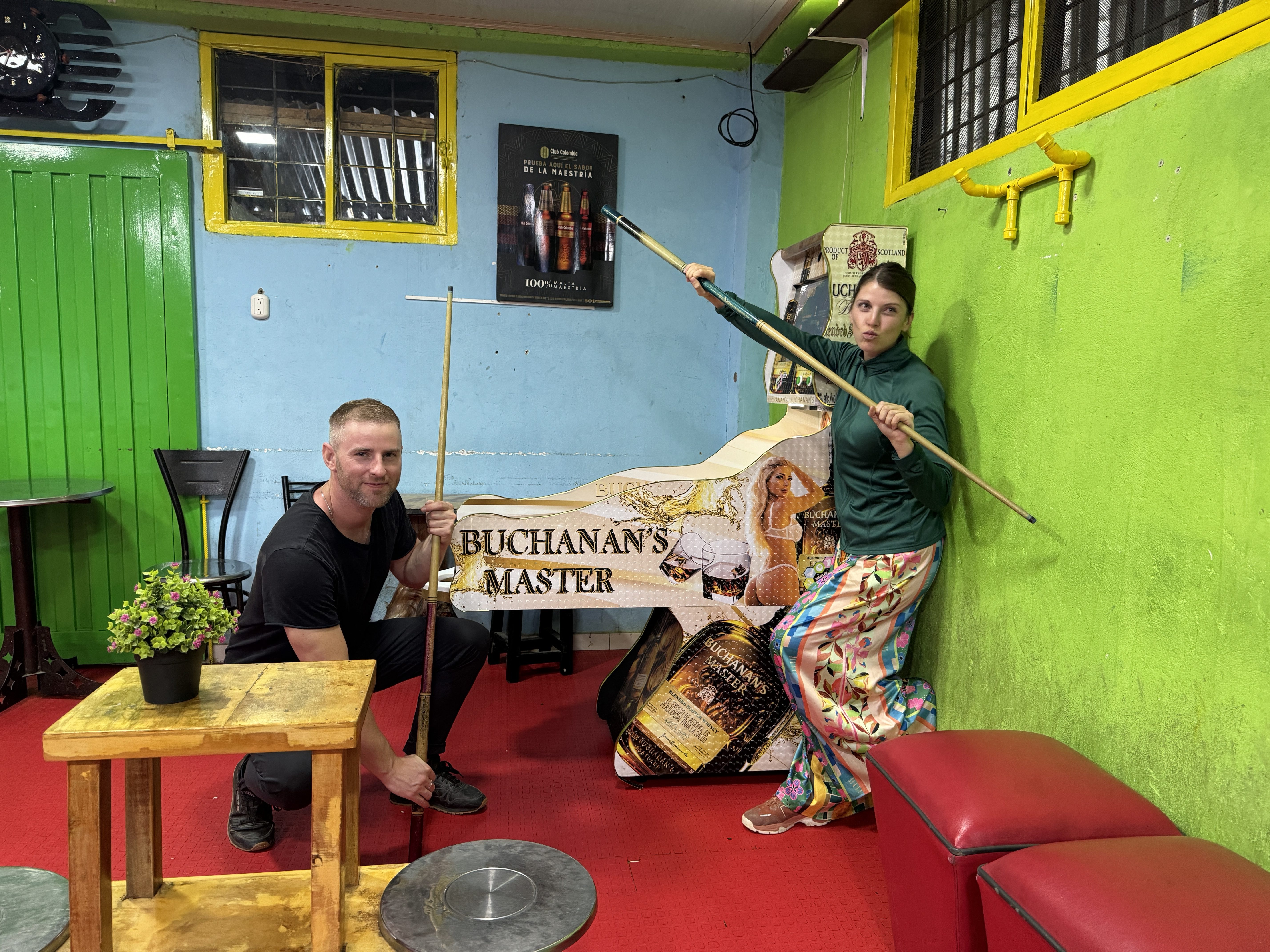 The bartender recognised Adam and welcomed us in to play a round of pool. Apparently Colombian pool rules are different, where everyone shoots the same ball until it’s eliminated then moves onto the next number. We ordered whisky cokes and enjoyed playing round after round of Colombian pool at this funny little dive bar. Unfortunately the Kings of Salento did not make an appearance, but it was still such a great time.
