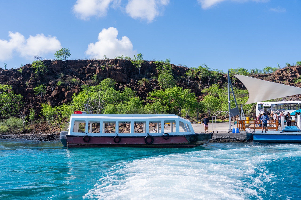 Our day started bright and early as we got ready for our ferry to Isabela. After a quick morning coffee, we headed down to the pier. Jennifer helped us get checked in, collect our ferry lanyards, and guided us on where to stand, reminding us to have a dollar ready for the water taxi. At the pier, we were once again greeted by the sights of blacktip reef sharks, pelicans, and sea lions, getting us hyped for our wildlife-filled day ahead. We boarded a water taxi, which whisked us away to our ferry in about 30 seconds. The ferry ride took about two hours, but we were sitting in the direct sunlight and it was so hot with no breeze for most of the ride. When we arrived on Isabela, we took another water taxi, this time spotting adorable little penguins and blue-footed boobies along the way.