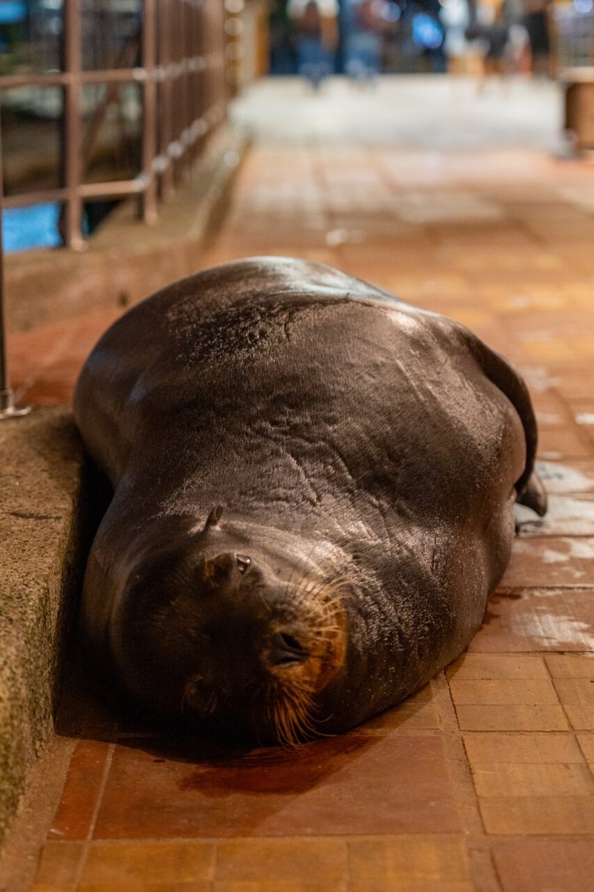 We dropped our bags in our accommodations, and walked to a pizza place for dinner. Along the way, we were charmed by the adorable sea lion pups lining the promenade. Our restaurant was right on the water, and we soaked up the island’s relaxing atmosphere as the sun set below the horizon.