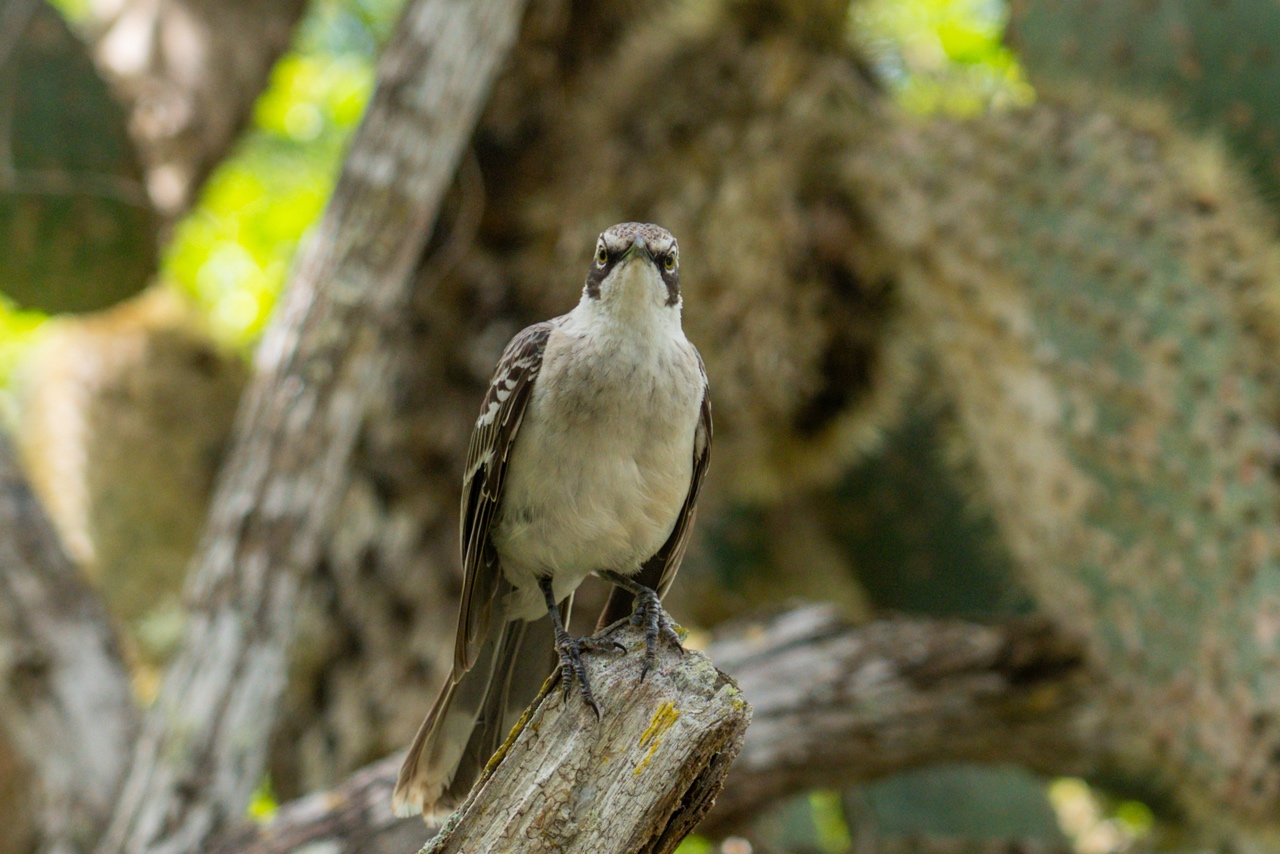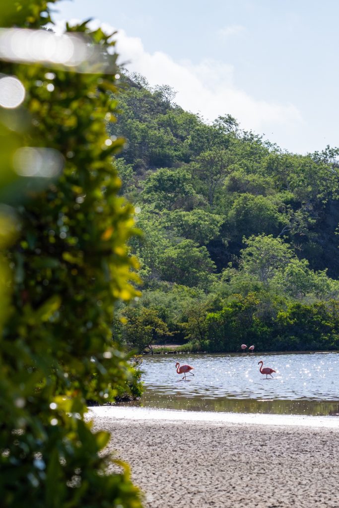 On our walk to the next beach, Jorge pointed out a bird that liked to fight its own reflection, and it flew right up to Sazzie’s face, staring off in a kind of standoff!