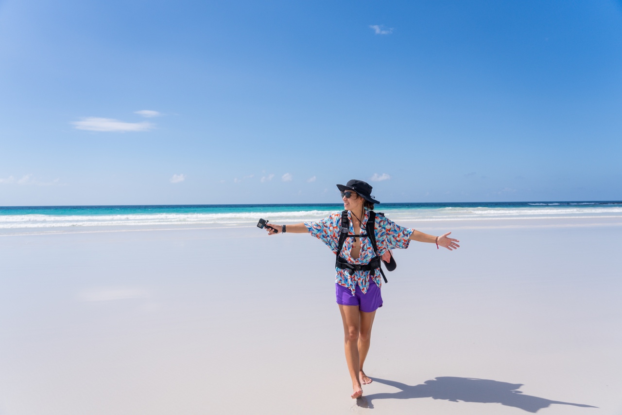 Afterward, we returned to the boat and went straight in for breakfast with Lars and Marie, enjoying eggs and sausages. We had a short break before heading off for our next adventure at Gardner Bay Beach on Isla Española, where we were greeted by sleepy sea lions. We dropped off our snorkel gear and took a walk down the beach. Saz chatted with Peter about his time living in India, while I walked with Dean, who told me about his work managing a hotel in Karratha, Australia. We mentioned that we were considering doing a working holiday visa in Australia after our travels, and he offered potential jobs for us if we were interested moving to the Outback… which was honestly really tempting given the great benefits and stunning nearby nature.