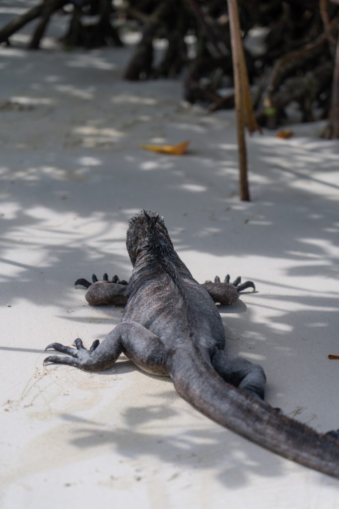 We landed at Galapagos Ecological Airport, the world’s first ecologically friendly airport in the world, running entirely on solar and wind energy. Stepping off the plane onto the tarmac, we were greeted by a giant iguana and other lizards, roaming freely around the airport area. We knew the Galapagos was ecologically bustling, but we didn’t realize it would be this quick before we started seeing some crazy animals! But it was HOT. After spending quite a while at high elevation, we were not used to the tropical heat and humidity and started sweating buckets immediately.