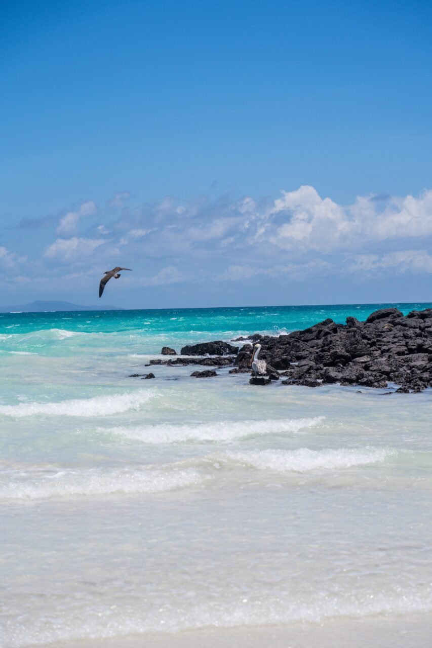 We started our day at 6:30 and had a simple breakfast of bread, bacon, and eggs before getting ready for the day’s adventure. Our first stop was Green Sand beach at Floreana Island — a bit of an exaggeration. There was some type of slightly green microorganism that lived in the sand that gave it the slightest green tint, but I would’t describe the beach as green by any means. We walked along the beach, saw turtle nesting areas, and got up close and personal with the blue-footed boobies. The highlight of the morning was definitely the salt water lagoon, where we spotted around 50 flamingos—such a cool sight! We even got to see one fly! I don’t know why I’ve never put two and two together that flamingos could fly, but it was odd to see one in action.
