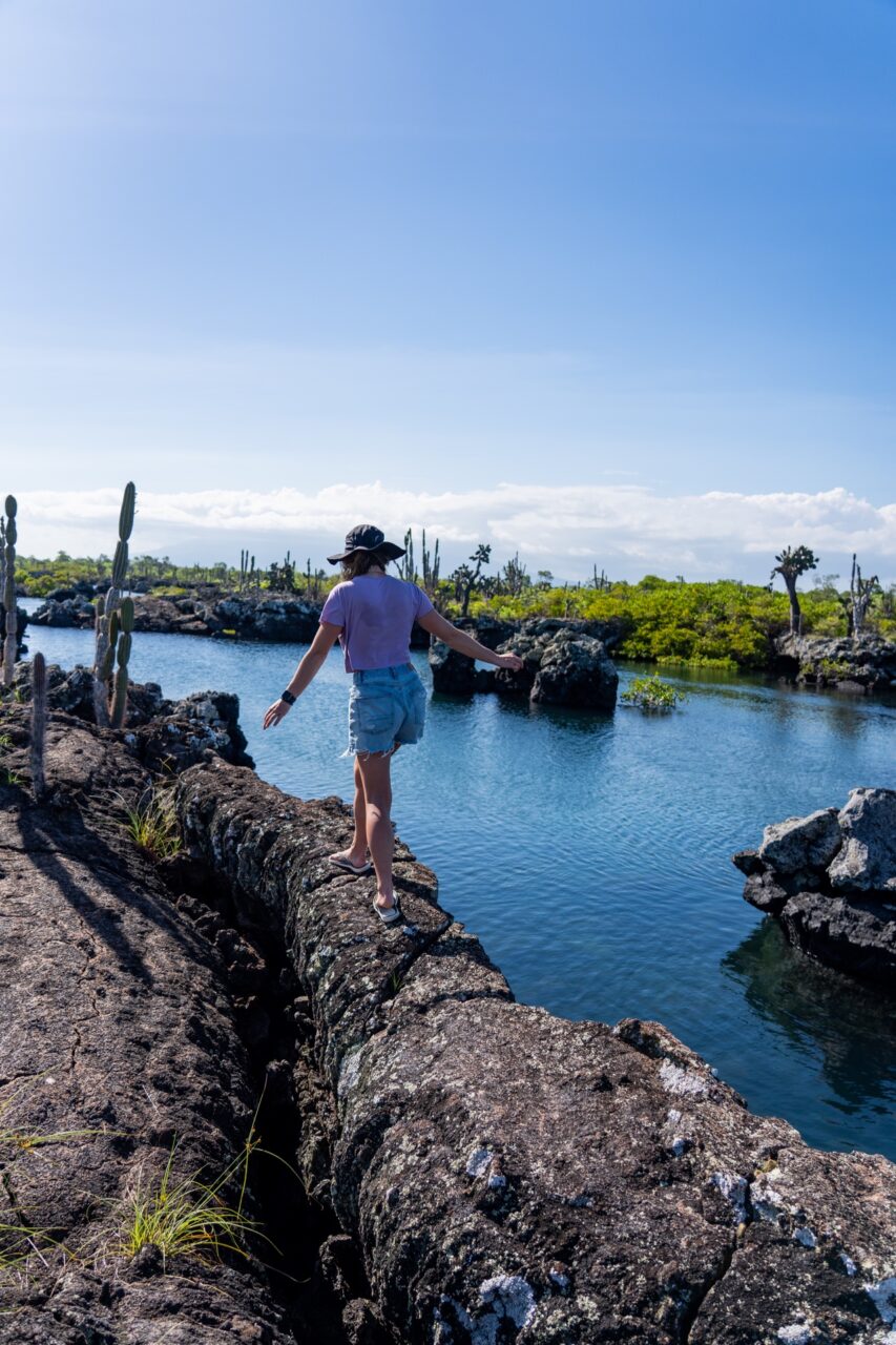 We each had to pay a $100 USD national park fee (which is going up to $200 USD/person this year!) and got our passports stamped with the special Galapagos stamp. Galapagos airport is on it’s own little island, so we had to collect our bags and take a little shuttle bus to a ferry, to take us to the main island of Santa Cruz. The drive was breathtaking, especially when the vibrant ocean came into view—like the colors had been turned up to full saturation.