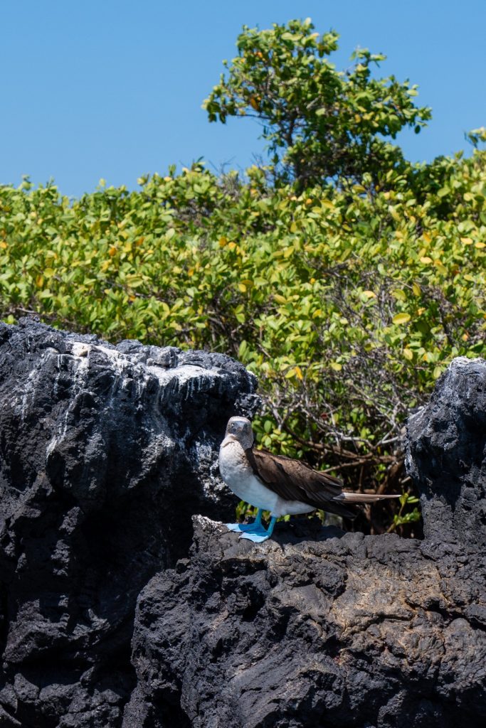 Post-breakfast, our tour bus arrived and drove us to the pier. Our guide, Pablo, was friendly and knowledgeable, and he immediately pointed out a colony of penguins and blue-footed boobies.