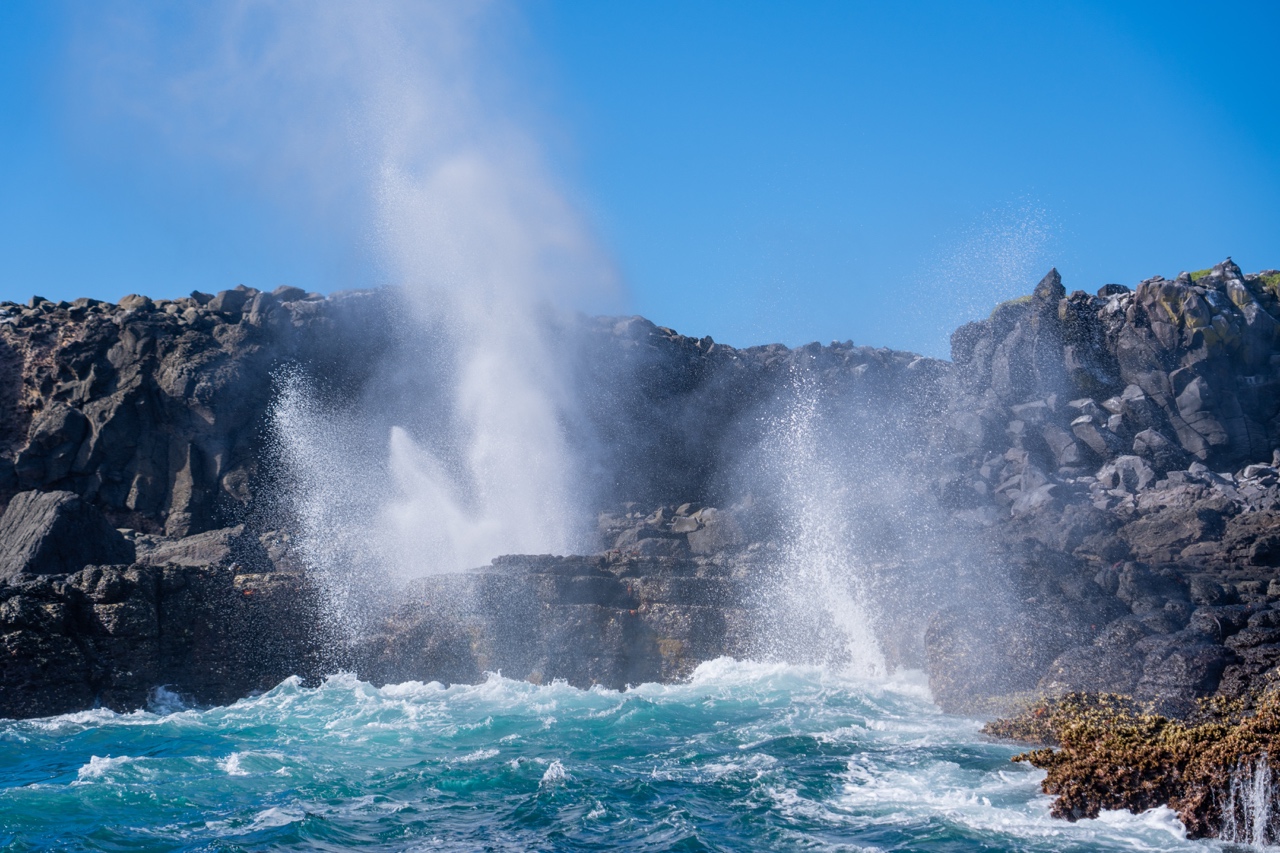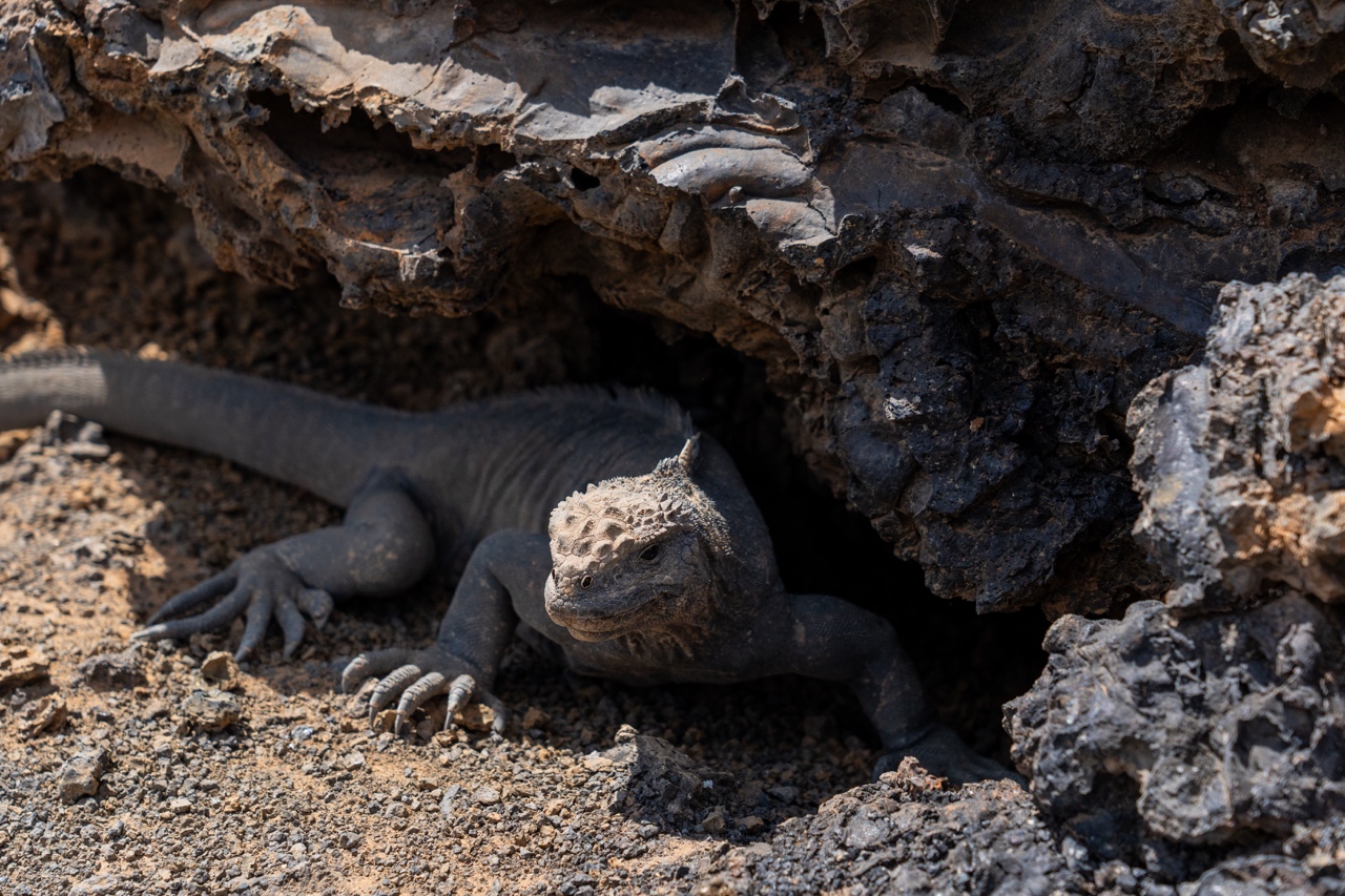 We visited Isla Tintoreras, where we saw huge colonies of marine iguanas and an area known as Shark Channel. Pablo explained that the sharks often get trapped there during low tide, and we managed to spot three big ones. He explained that when he was a kid, they would regularly swim and jump in the channels with the reef sharks, but the government had since banned that type of behavior to protect the animals. This portion of the tour was on land, and we were absolutely roasting in the hot sun on the black volcanic rocks.