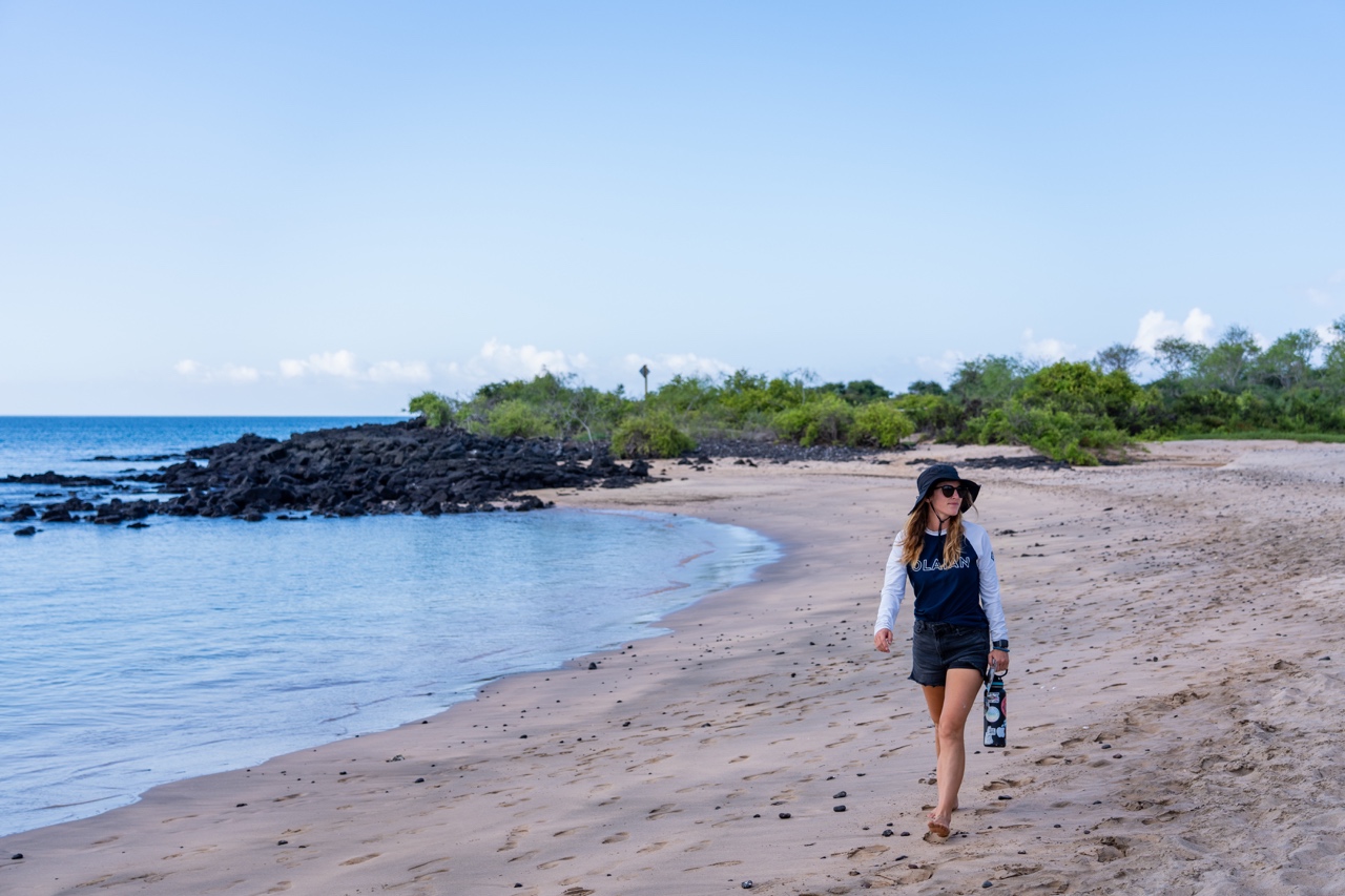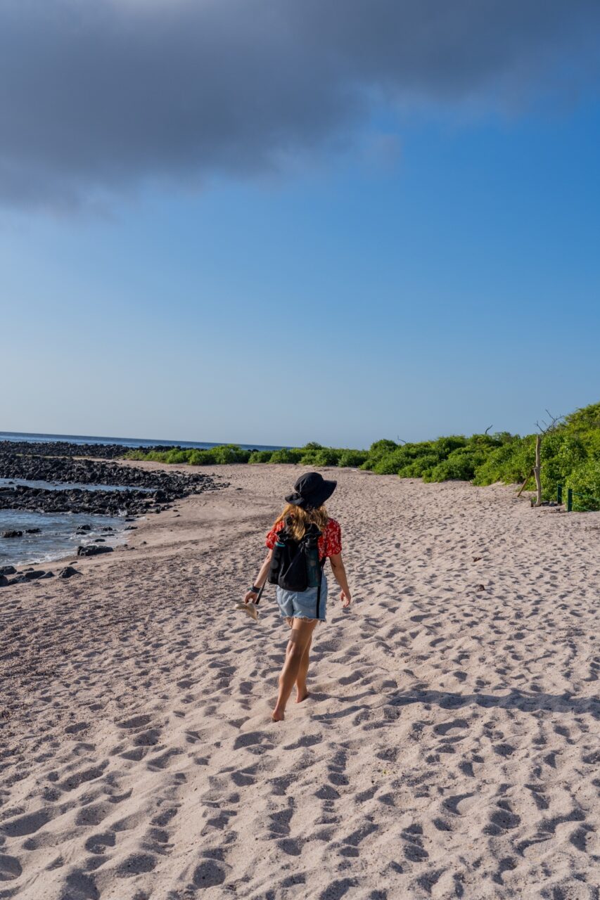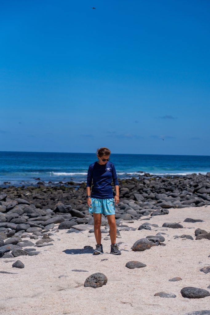 The next morning, we started the day with a simple breakfast of coffee, tea, scrambled eggs, toast, ham, and made sandwiches for our beach adventure. One of our friends, Johannes, that we had met on our boat trip in the Philippines, had just been in the Galapagos a few weeks prior and messaged us on Instagram with an amazing recommendation – a beach on the island called Tortuga Bay was apparently a breeding ground for hammerheads, and had lots of baby hammerheads swimming around. We were super excited to go out and try to find some of the cute little guys.