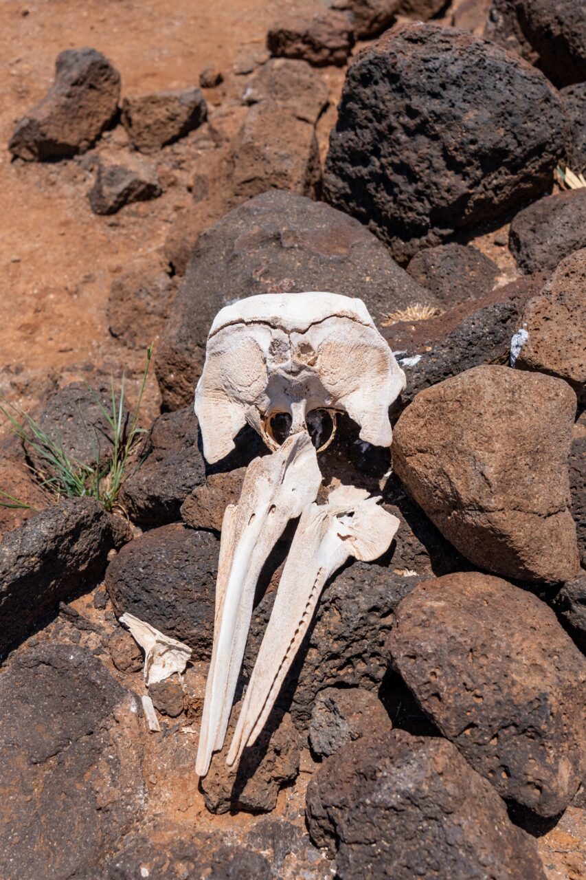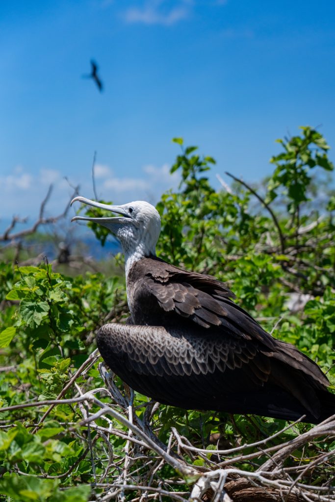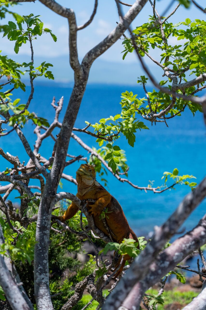 Arriving at North Seymour made it worth it—the water was breathtakingly clear and vibrant. Disembarking the boat, we immediately saw countless frigate birds, land iguanas, sea lions, and even a dolphin skull. Unfortunately there were also very pesky and annoying sandflies nipping at our bare legs, and the hot sun beat down on us as Felipe explained the various flora and fauna on the island. The land based portion of the tour was honestly only okay, once you’ve seen one frigate bird you’ve kind of seen them all.