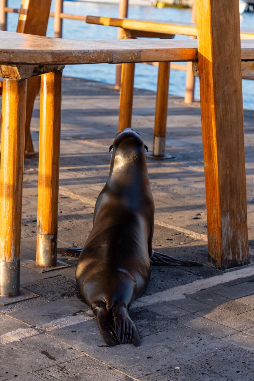 The morning of our trip, we packed our things and checked out of our hotel. Our meeting time wasn’t until 1 pm, so we enjoyed our last morning, strolling along the beautiful promenade and soaking in our last few minutes on San Cristobal. We had some lunch on a bench along the water, next to a big boy sea lion who must’ve had the same idea and was napping, taking up most of the bench.