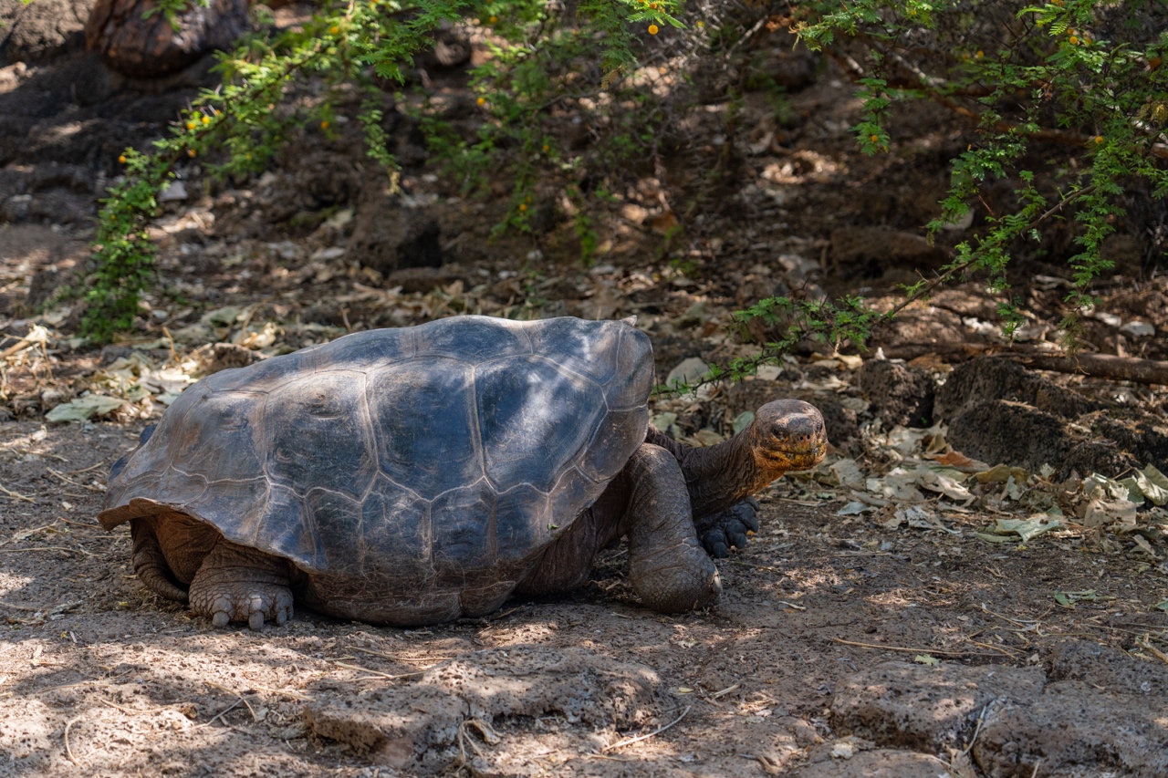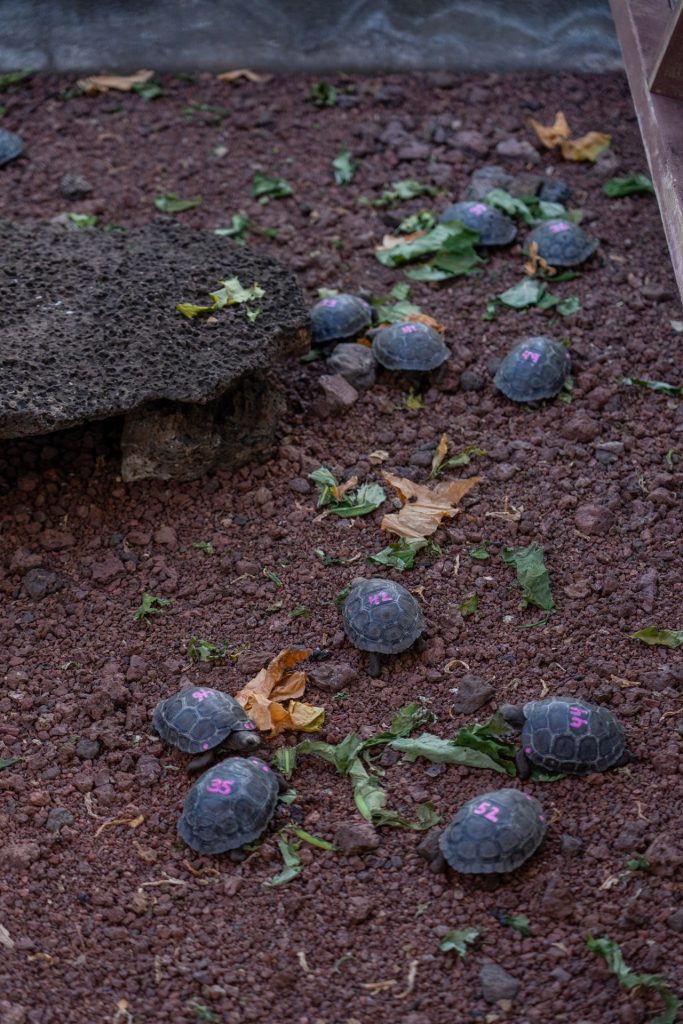 After eating, we had a bit of downtime in the cabin until it was time for the dinghy ride to land. A bus took us to the Charles Darwin Research Station and the Giant Tortoise breeding center, where we learned a lot about the conservation efforts for the different tortoise species. The highlight was seeing both the tiny baby tortoises and the big ones that weren’t strong enough for the wild. Jorge also told us the sad story of Lonesome George, the last of his species, whose inability to reproduce sealed the extinction of the Pinta Giant Tortoise.