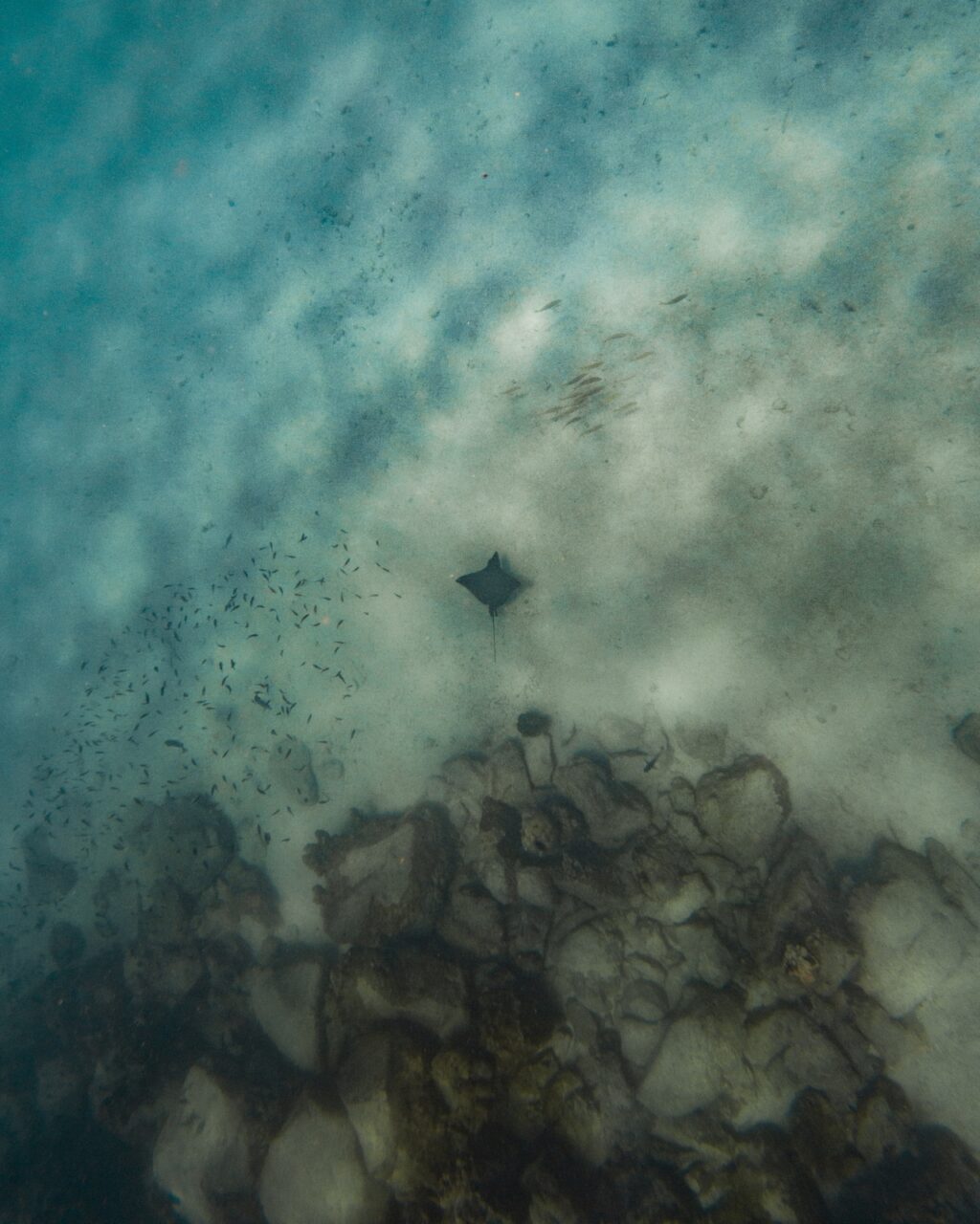 Everybody had retreated back onto the boat for lunch, but we wanted to soak in every last minute of being in the water. Just when we thought it couldn’t get better, I spotted an eagle ray and screamed for Sazzie and Cheryl. After some frantic swimming, we all got to witness the majestic ray up close, and snagged some amazing GoPro footage. It was an unforgettable moment.