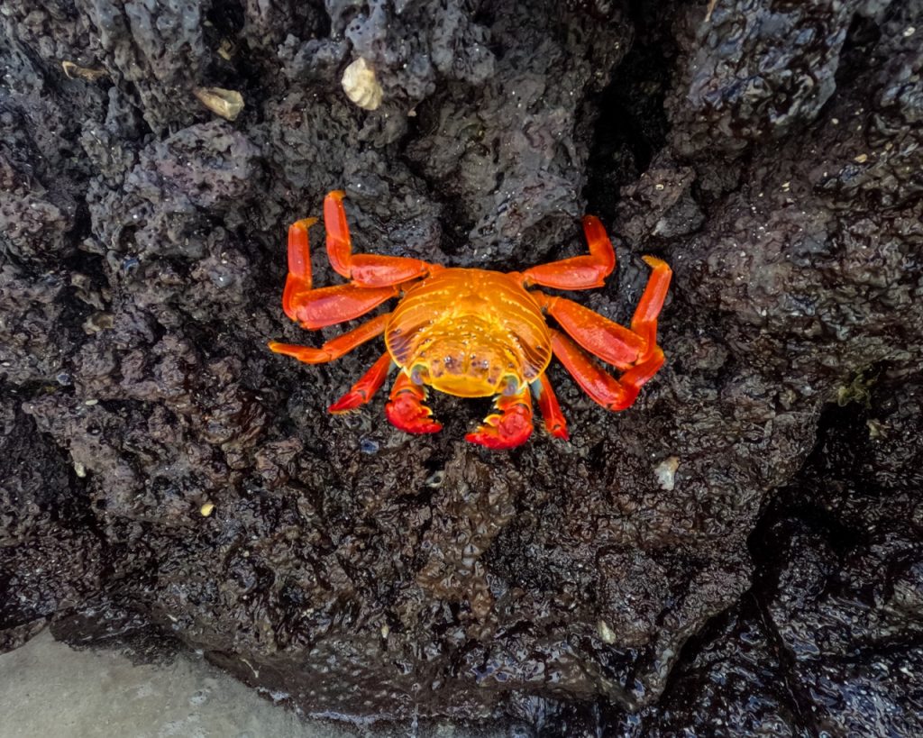 After lunch, we had some downtime on the front of the boat as we drove to the next point, reading and relaxing. We arrived at Suarez Point, famous for their waved albatross. Unfortunately, we didn’t see the waved albatrosses since it wasn’t the right season, but instead we spotted sea lions, crabs, marine iguanas, and blue-footed boobies.