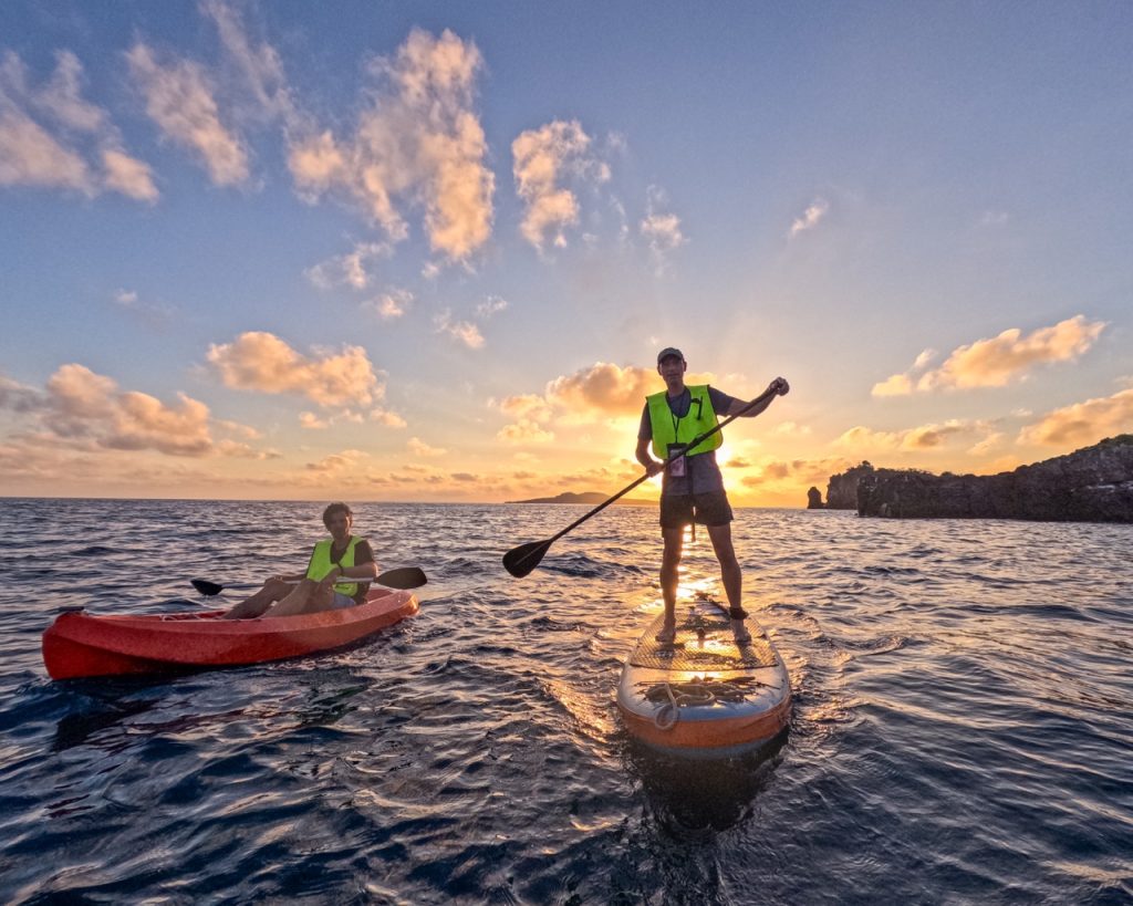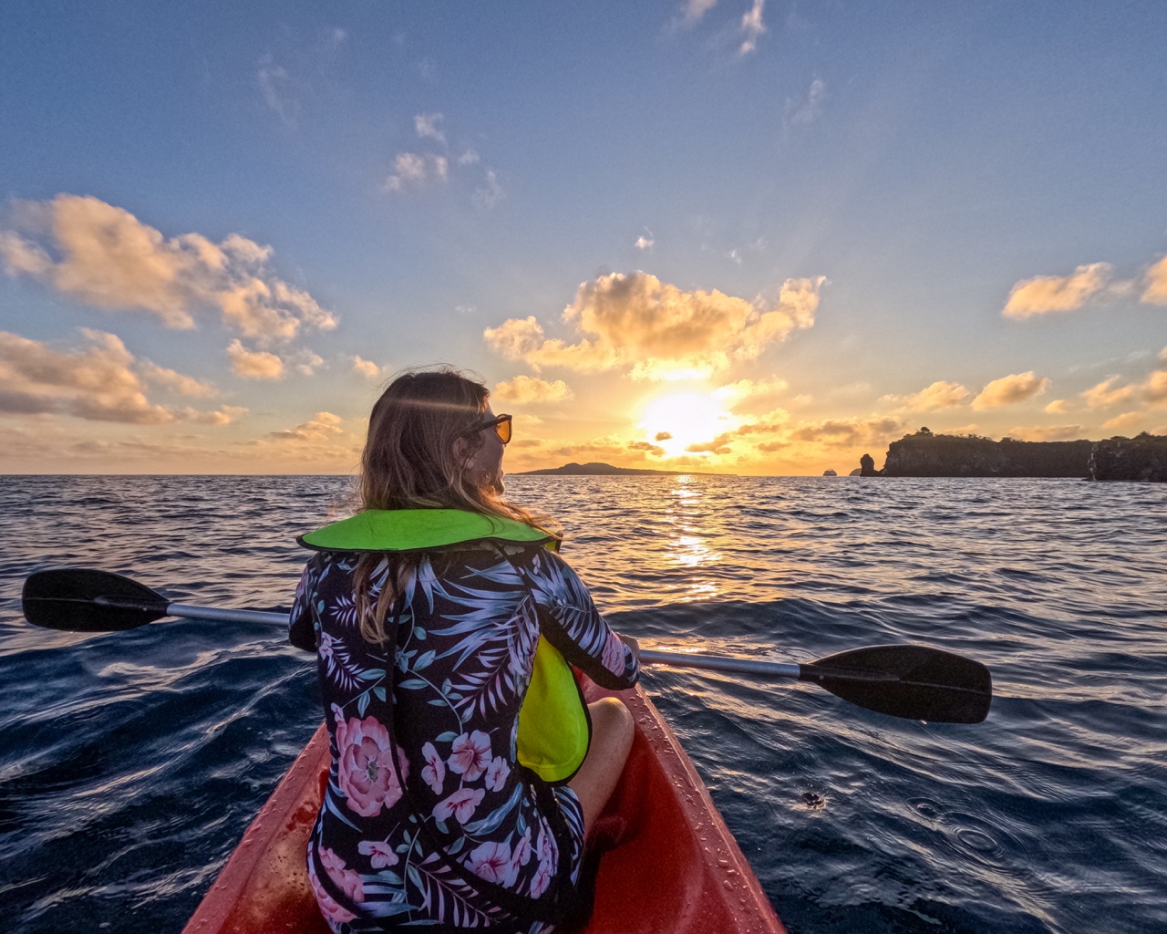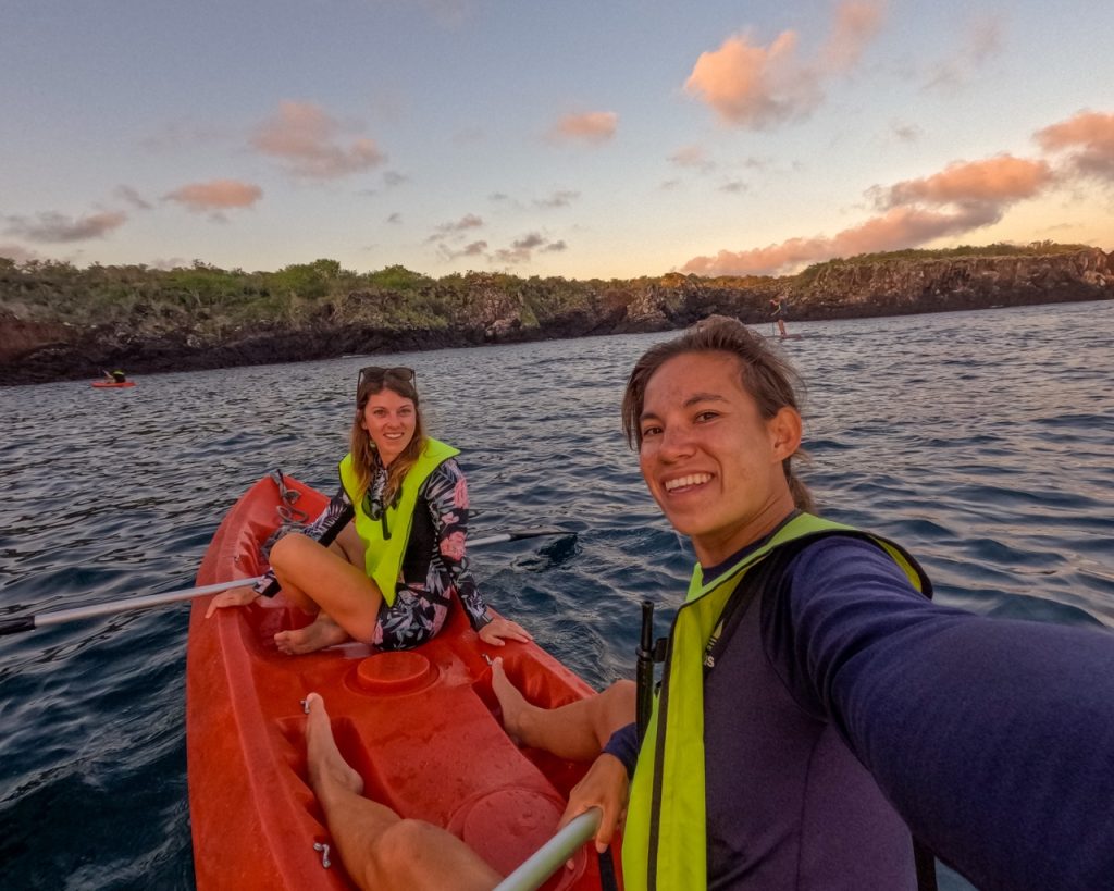 Jorge had offered the option to wake up early and do a sunrise kayak adventure. There were only six of us that took him up on the offer, so Saz and I set off in our a double kayak, Lars and Marie also in a double, Peter in a single kayak, and Michael on a paddleboard. The sunrise was beautiful, and we were lucky to spot blue-footed boobies and sea lions as we paddled. Jorge and our other guide, Graciela, were guiding us in a zodiac. Halfway through the paddle, Peter and Michael decided to trade rowing apparatuses, and when Peter attempted to switch to the paddleboard, he completely wiped out and fell into the water twice trying to get on.
